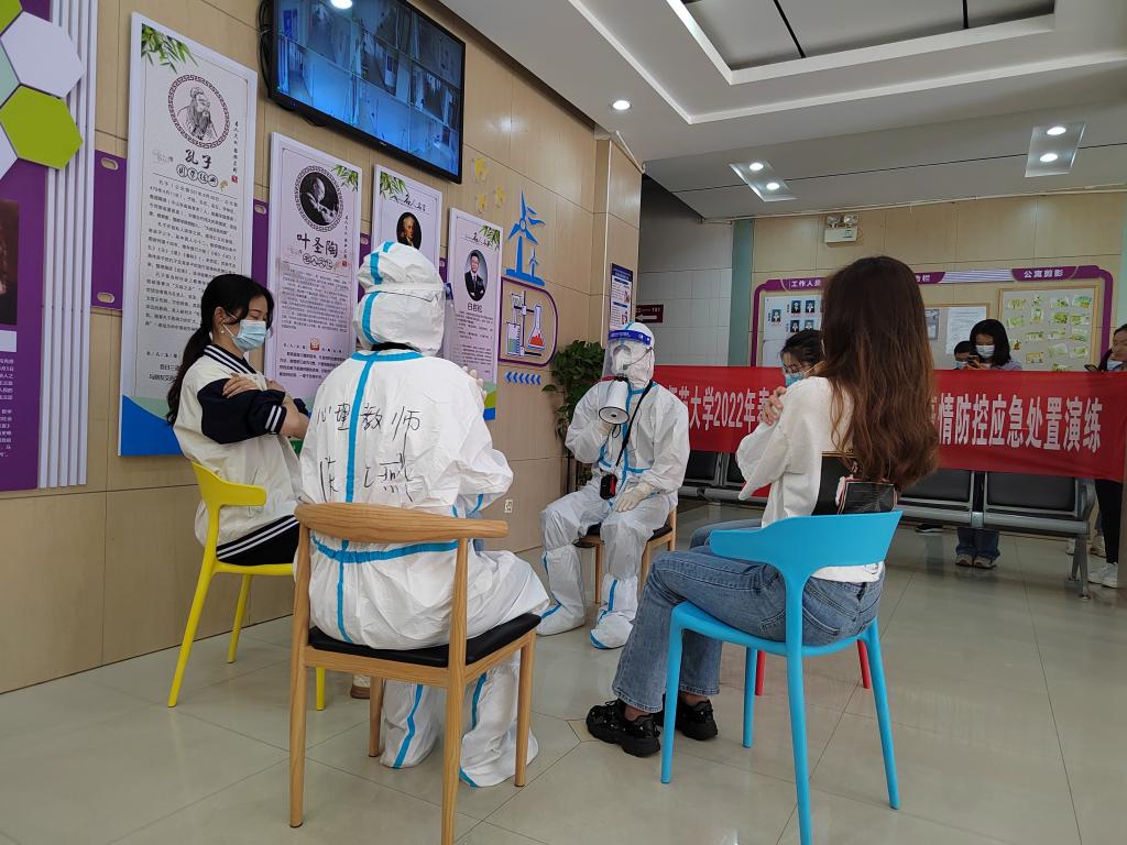 校党委副书记张玮、李宏,校纪委书记王志刚,副校长蔡金红,校疫情防控办、校医院、心理健康教育咨询中心、校医院、后勤保障服务中心、教育学部等相关单位人员参加演练,各相关部门负责人、各学院(学部)党委副书记及辅导员等现场观摩。此前,学校专门成立疫情防控应急演练工作组,提前周密部署、详细安排了演练方案和处置流程,明确了演练过程中的注意事项。