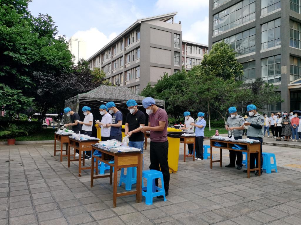 为进一步贯彻落实省委、省政府、省委教育工委、省教育厅关于做好校园疫情防控的相关要求,结合当前疫情防控形势,进一步细化措施、堵塞漏洞,提高我校师生员工面对疫情突发情况的应急处置能力,7月2日上午,我校在呈贡主校区西区3栋开展2022年春季学期第二次新冠肺炎疫情防控应急处置演练。