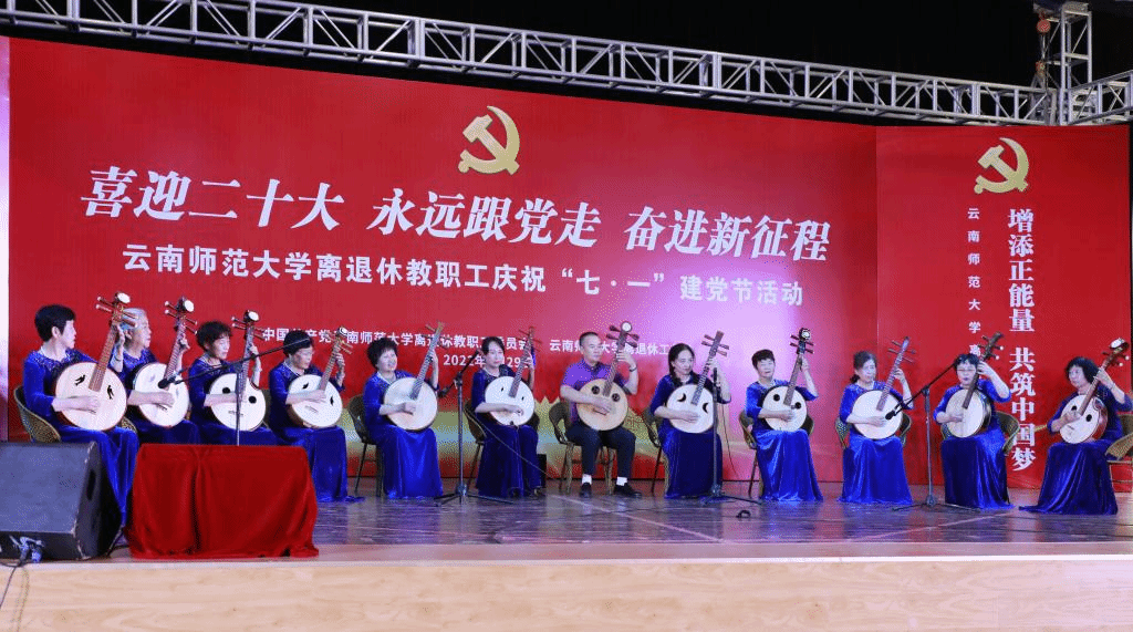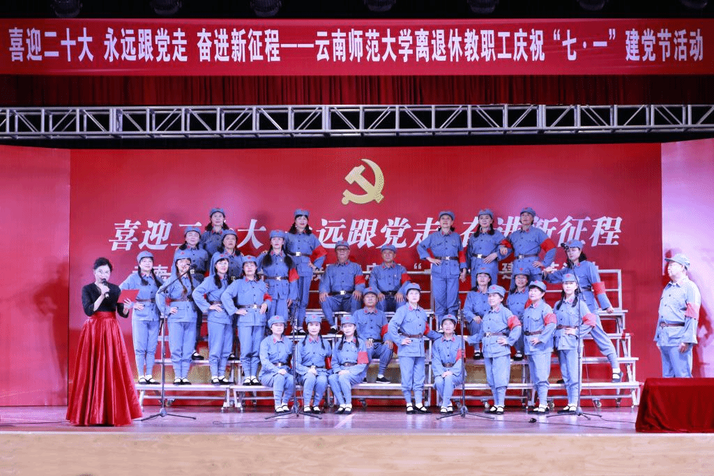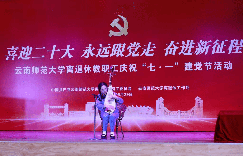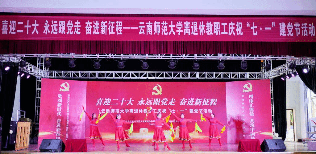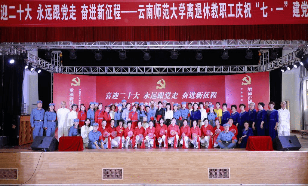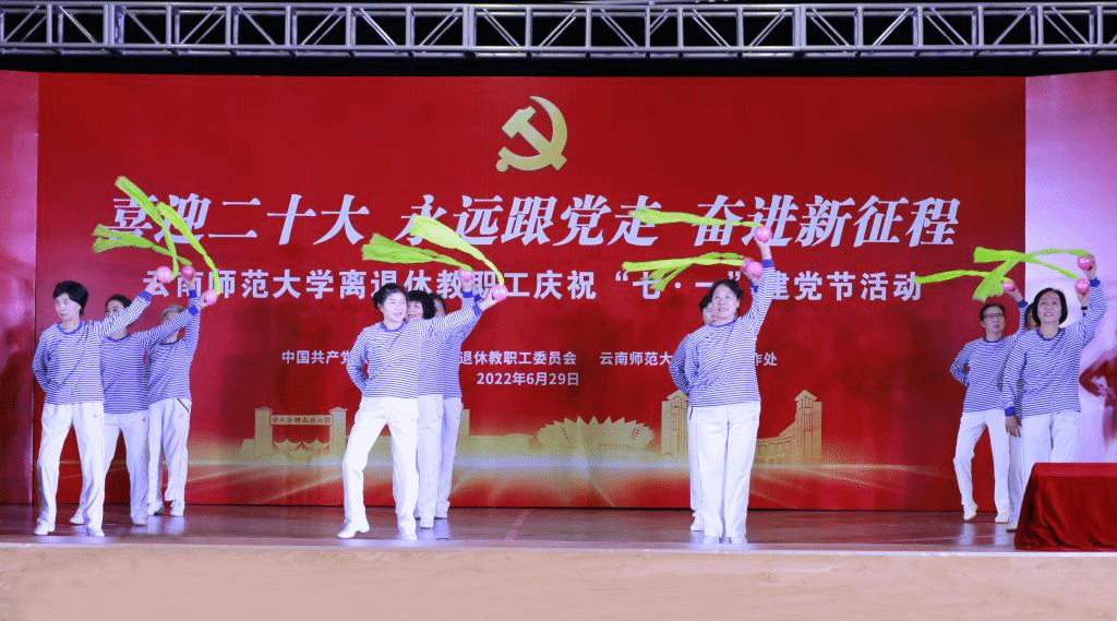 2022年6月29日下午,离退休教职工党委、离退休工作处在一二一西南联大校区离退休教职工西院活动中心举行离退休教职工“喜迎二十大 永远跟党走 奋进新征程”庆祝“七·一”建党节活动。校党委副书记张玮,学校离退休老领导,学校离退休工作领导小组成员单位及联大校区相关单位负责人,获得中共中央“光荣在党50年”纪念章的老党员,文艺作品获奖者等参加了活动。