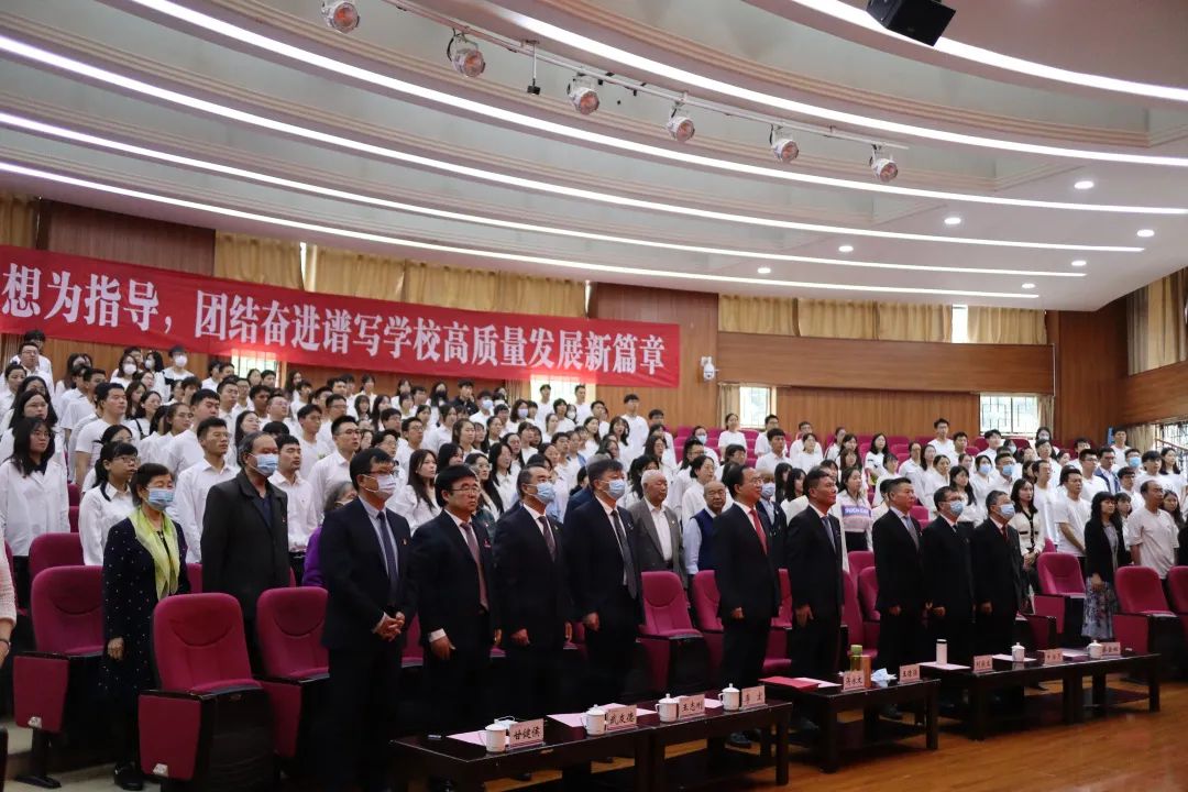 在中国共产党成立101周年之际,7月1日上午,云南师范大学“七一”建党节“奋进新时代 献礼二十大”主题活动在呈贡主校区汇学楼报告厅举行。活动向党龄达到50周年、一贯表现良好的党员代表颁发“光荣在党50年”纪念章,举行新党员入党宣誓暨老党员重温入党誓词仪式,号召全校各级党组织、广大党员干部师生坚定不移听党话、跟党走,充分发挥共产党员先锋模范作用,胸怀大局、奋勇担当,埋头苦干、勇毅前行。校党委委员,相关职能部门党员主要负责人,各二级单位党组织书记,各学院(学部)师生党员代表,获得“光荣在党50年”纪念章党员代表参加此次活动。活动由校党委副书记张玮主持。