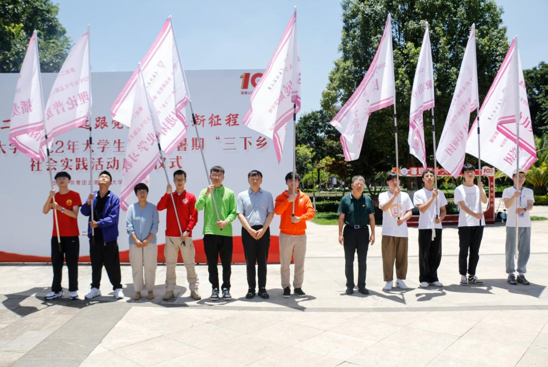 启动仪式上,校党委李宏副书记、蔡金红副校长和校团委书记郑伟俊一起为本次暑期社会实践立项小分队授旗。