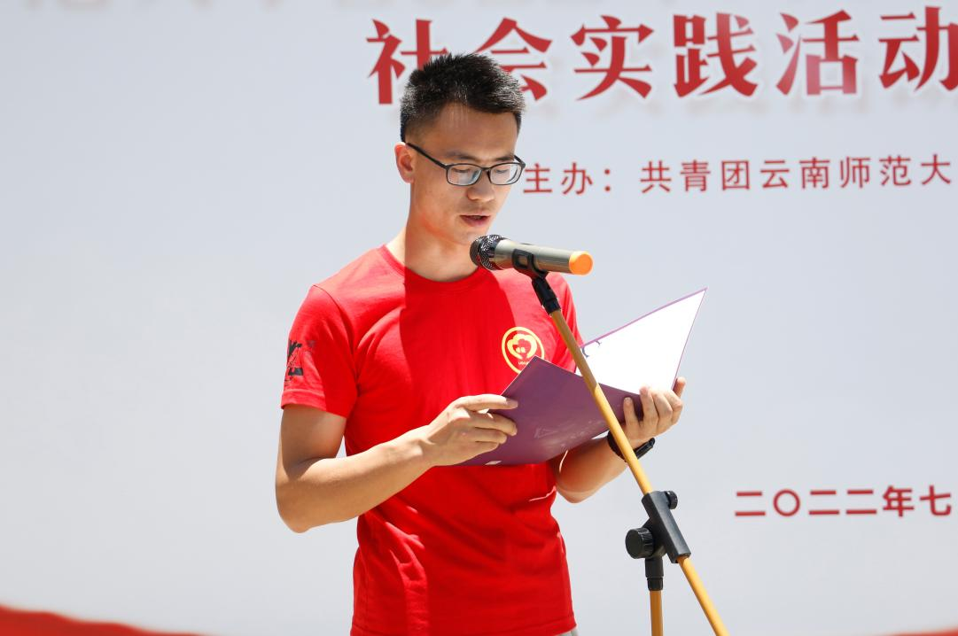 校党委副书记李宏在启动仪式上讲话,代表学校向即将出征的师生们致以亲切的问候和祝愿。他指出,本次暑期“三下乡”社会实践活动是深入贯彻落实习近平总书记在庆祝中国共产主义青年团成立100周年大会上的重要讲话精神和考察云南重要讲话精神的具体体现,是以实际行动迎接党的二十大胜利召开的具体举措,是引导和帮助我校青年大学生将理论与实践相结合的“大思政课”,是社会大课堂中“受教育、长才干、作贡献”的青春历练。他对参加实践活动的同学们提出四点希望:一是牢记习近平总书记的嘱托,坚定理想信念,抓住此次“三下乡”社会实践活动的宝贵机会,苦练本领、锐意创新,艰苦奋斗、担当奉献,争取在青春的赛道上跑出当代青年的最好成绩;二是聚焦国家发展战略,紧扣云南高质量跨越式发展需求,用脚步丈量祖国大地,用眼睛发现中国精神,用耳朵倾听人民呼声,用内心感应时代脉搏,为谱写好中国梦的云南篇章贡献青春力量;三是在社会实践活动中不怕吃苦、热情服务、虚心学习,认真开展调查研究,切实为当地做实事、做好事,为群众排忧解难;四是严守纪律、安全第一,确保自身生命财产安全,切实做好疫情防护,注意防范自然灾害,与学校和老师保持密切联系,高高兴兴实践去,平平安安回校来,圆满完成暑期社会实践活动。