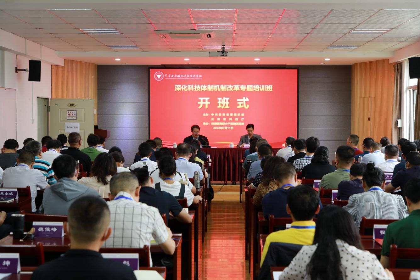 7月11日,由省委组织部、省科技厅主办,云南西南联大干部培训基地承办的云南省深化科技体制机制改革专题培训在我校开班。我校保留正厅级待遇干部李国疆教授出席开班式并作动员讲话,省级有关部门相关业务处室、州(市)科技体制改革主管部门、部分县(市、区)科技主管部门的负责同志76人参加培训。云南西南联大干部培训基地执行副主任铁发宪主持开班式。