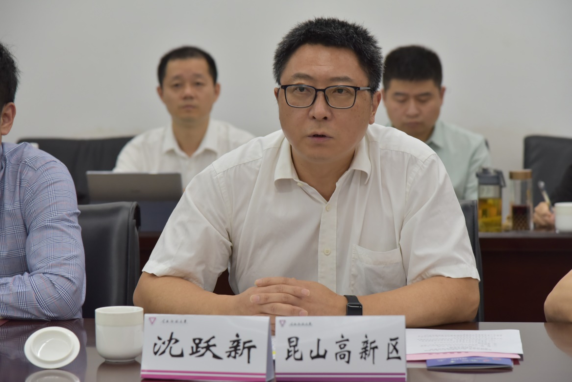 昆山高新区管委会副主任沈跃新简要介绍了昆山高新区的发展历程、基本情况,以及新冠疫情对高新区经济社会发展带来的挑战。他指出,当前昆山高新区的一个重要工作是科技创新、人才创新,近几年在创新资金的投入、创新载体的建设以及创新人才的培养方面下了大力气,昆山高新区从2018年开始与高校联合培养研究生工作,截止到目前,已经与包括云南师范大学、西安电子科技大学、兰州大学、河海大学在内的十余家高校签订了联合培养协议,培养了将近250名研究生。沈跃新副主任表示,昆山高新区对于联合培养研究生的工作目标是迎得进、育得出、留得住、用得好,希望云师大工程类研究生的培养规模能进一步扩大,为企业提供更多的人才,使合作更广泛、更深入、更有成效,同时希望教师将科研成果、科研项目带到昆山高新区落地,推动科技成果转化,实现产业化,昆山高新区将给予专项支持。最后,他希望双方之间共同努力,实现合作共赢。