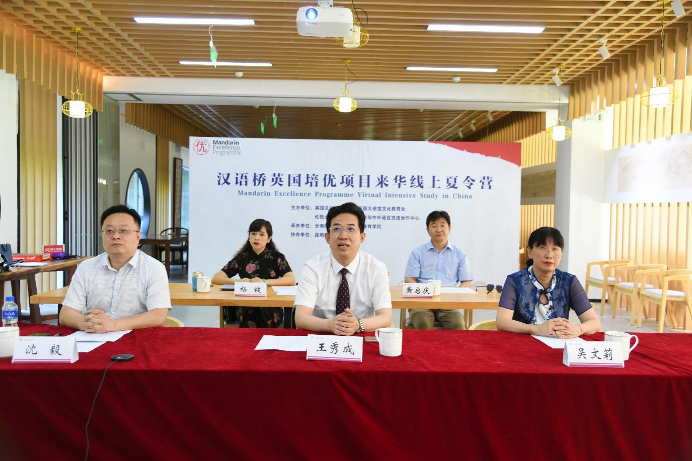 国际汉语教育学院作为具体实施学院在闭幕式第二阶段开通直播分会场,举办了闭幕式第二阶段结营典礼。学院领导、授课教师、助教、汉推基地办公室工作人员,昆明市五华区云铜中学教师、学生代表,以及英方教师、学生代表参加。