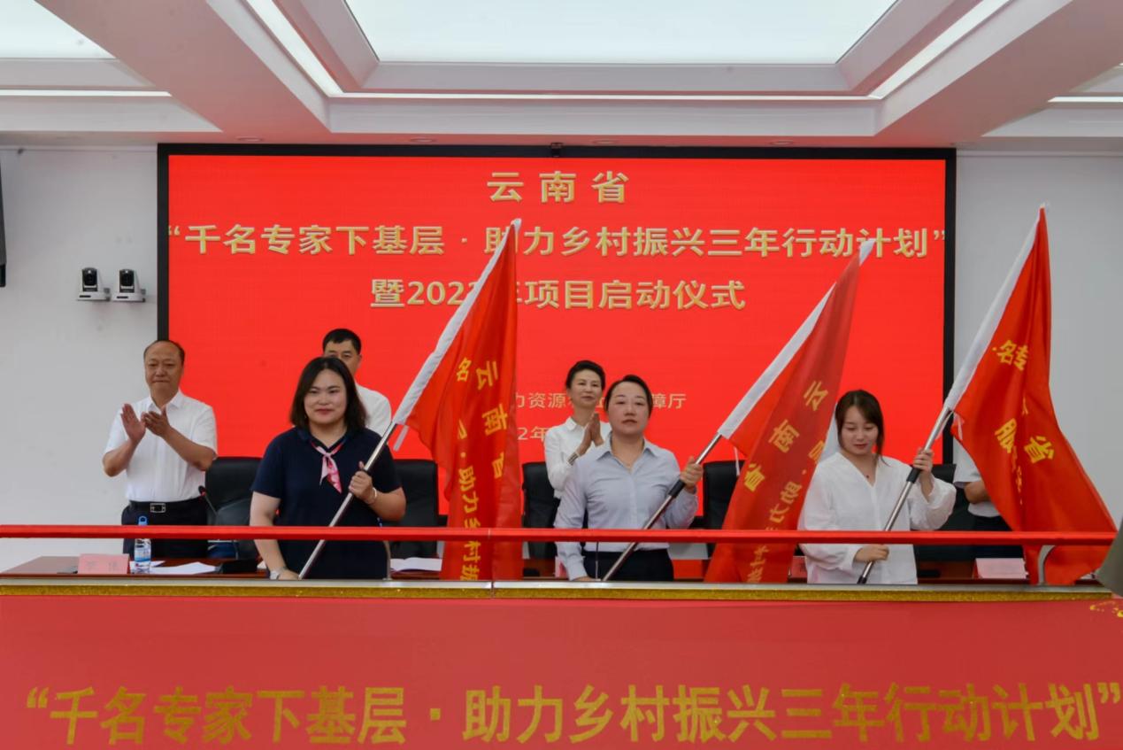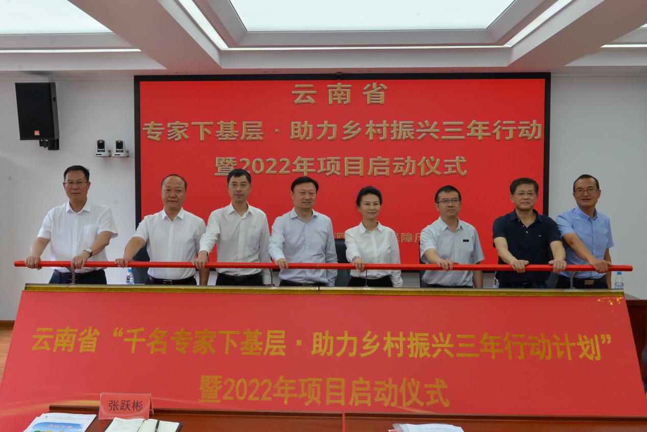 与会领导和专家代表共同推杆为首发团授旗,熊梅副厅长宣布云南省“千名专家下基层·助力乡村振兴三年行动计划”暨2022年项目正式启动。