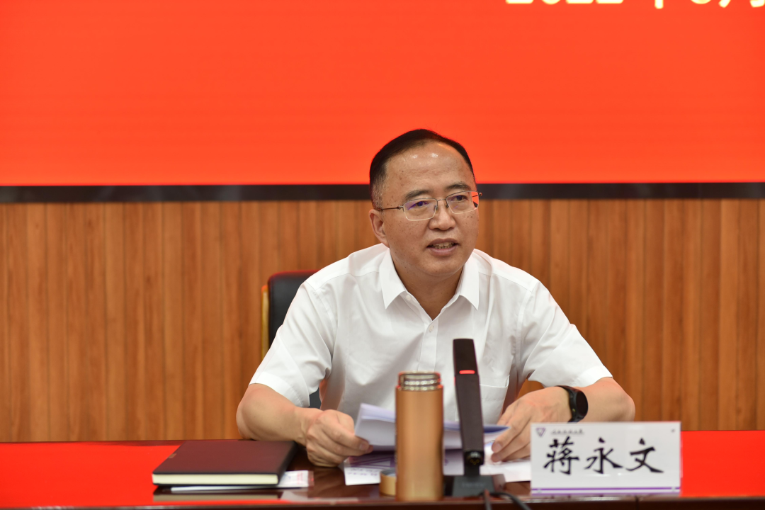 蒋永文在讲话中分析了当前的发展形势及学校办学取得的成效,指出下半年学校要围绕6项工作进行:一要把党的政治建设摆在首位,坚定不移加强党对学校工作的全面领导。坚持党的全面领导,把党中央的决策部署落到实处;二要深化党的创新理论武装,扎实做好迎接党的二十大各项工作。持续巩固壮大主流思想舆论,充分发挥各类宣讲平台、媒介作用;三要筑牢思政育人阵地,建强党的组织体系。进一步推进“三全育人”综合改革,加强西南联大旧址爱国主义教育基地的建设和管理,健全师德师风考核制度,压实基层党建工作责任,持续推进巩固拓展脱贫攻坚成果同乡村振兴有效衔接,加强党对统一战线、群团工作的领导;四要抓好领导班子建设,建强干部人才队伍。坚定不移加强各级领导班子思想政治建设,不断提升班子的引领力、服务力,全力打造团结和谐、责任过硬的班子,坚定不移选好人、用对人;五要深化作风效能革命,不断净化优化校园政治生态。始终坚持严的主基调,毫不动摇推动“不敢腐、不能腐、不想腐”“三不”一体方针方略;六要抓好政策机遇,以高品质的规划引领学校高质量发展。严格落实第十三次党代会的组织筹备工作,把学习贯彻党的二十大精神与谋划当前和今后一个时期的工作结合起来,贯彻省委印发的系列文件,科学谋划学校未来发展。