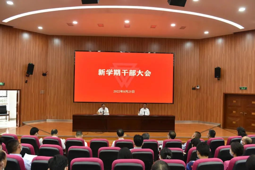 8月25日下午,我校在呈贡主校区召开新学期干部大会。校党委书记蒋永文主持会议并就重点工作落实提出要求。校党委副书记、校长王德强总结回顾学校上半年主要工作,部署新学期重点任务。