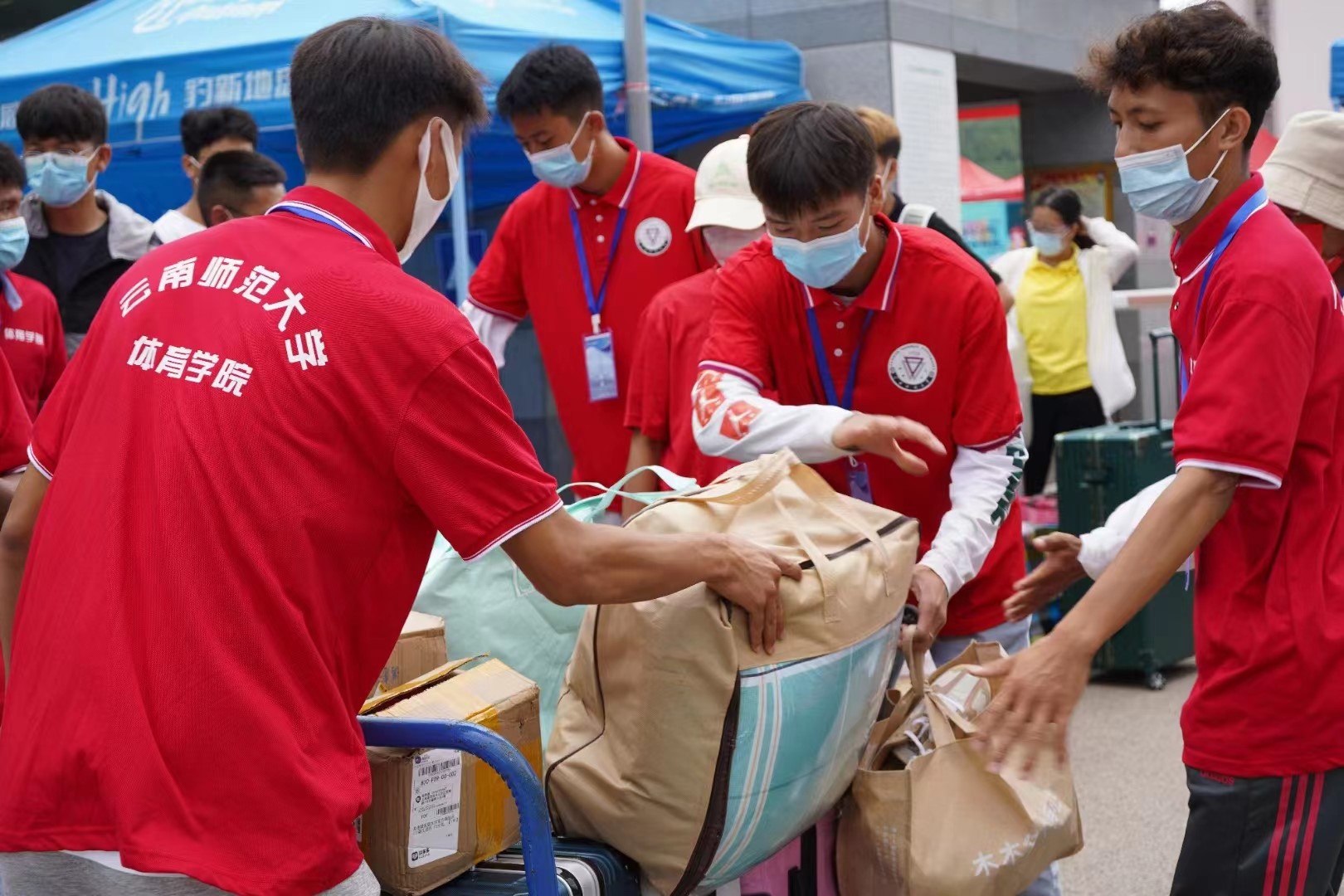 学校各部门(学院)分工明确、各司其职,充分做好准备工作,确保迎新工作安全、有序、顺利地进行。学校官方微信公众号发布了“转发收藏!@2022级新同学,你要的新生报到指南来啦!”,向广大新生和家长介绍了报道流程及相关注意事项;学校派出专车和志愿者到昆明站、昆明南站、吴家营地铁站、联大街地铁站迎接新生;学校志愿者、辅导员等对新生提供通道指引、问询服务。各学院志愿者身穿统一制服,佩戴定制口罩,在新生入校报到路径设立引导站点,以亲切热情的态度为新生提供全流程全覆盖的指引及帮助;对行李较多的新生,校内安保人员与志愿者们同心协力,利用巡逻车运送行李,为新生送上最贴心的帮助;面对新生的到来,学生公寓的宿舍管理员们积极开展工作,力求认真负责、准确快捷的为新生们办理入住手续。至此,在全校师生员工的联动协同、通力合作下,2022级新生顺利到达新“家”,开启新的征程。