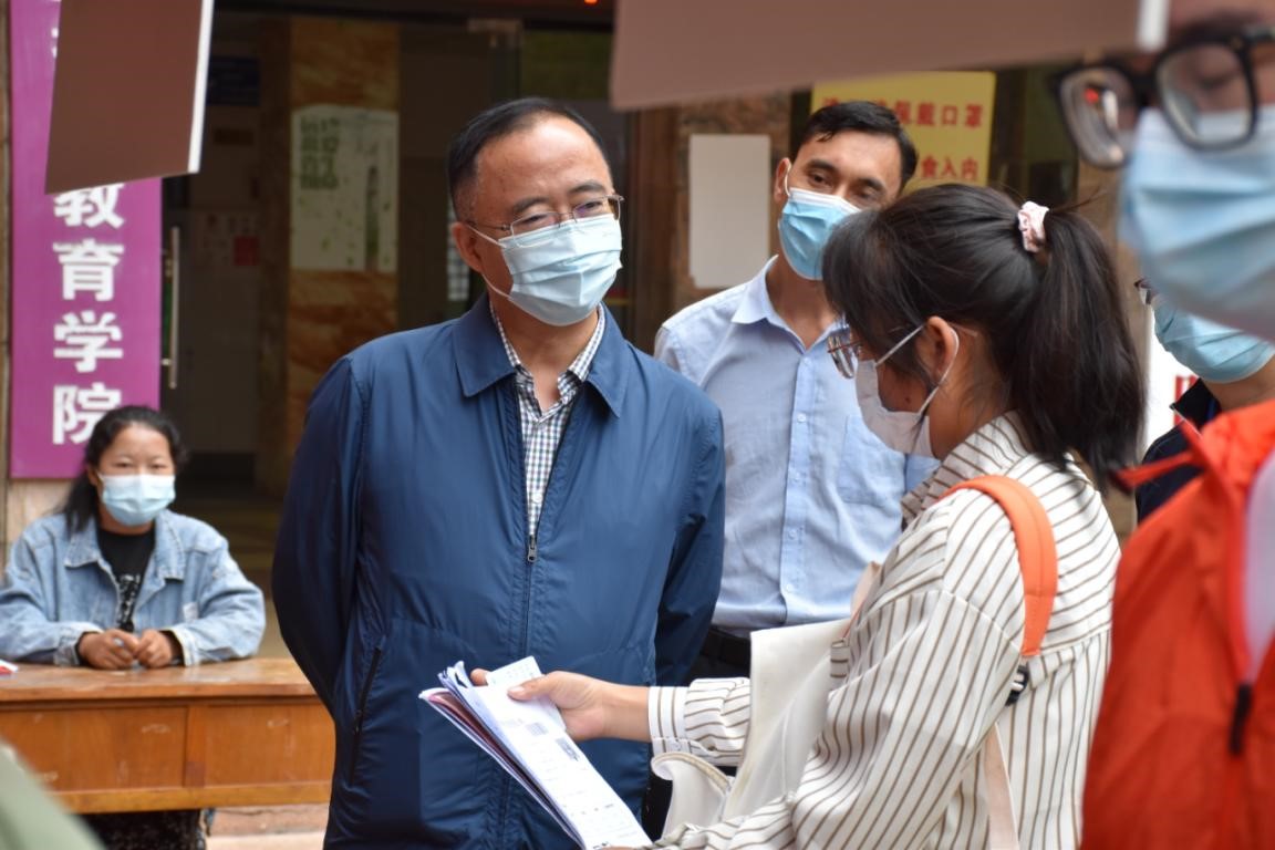 王德强一行来到呈贡校区新生报到点,在法学与社会学学院、传媒学院、信息学院、物理与电子信息学院等新生接待处详细了解报到人数和进展,询问各专业录取情况,鼓励同学们入校后丰富校园学习生活,经常参加实践活动,未来到社会多历练、广泛就业。在家长等候区,王德强向等候在这里的家长了解家庭情况,告诉他们:“把孩子交给我们,请你们放心!”他表示,学校一定会安排好入校学生的学习生活,营造良好的学习氛围。他肯定了各学院(学部)井然有序的迎新工作,强调在严格落实疫情防控工作的前提下,确保每一位进入校园的新生都能有序、顺利入学。