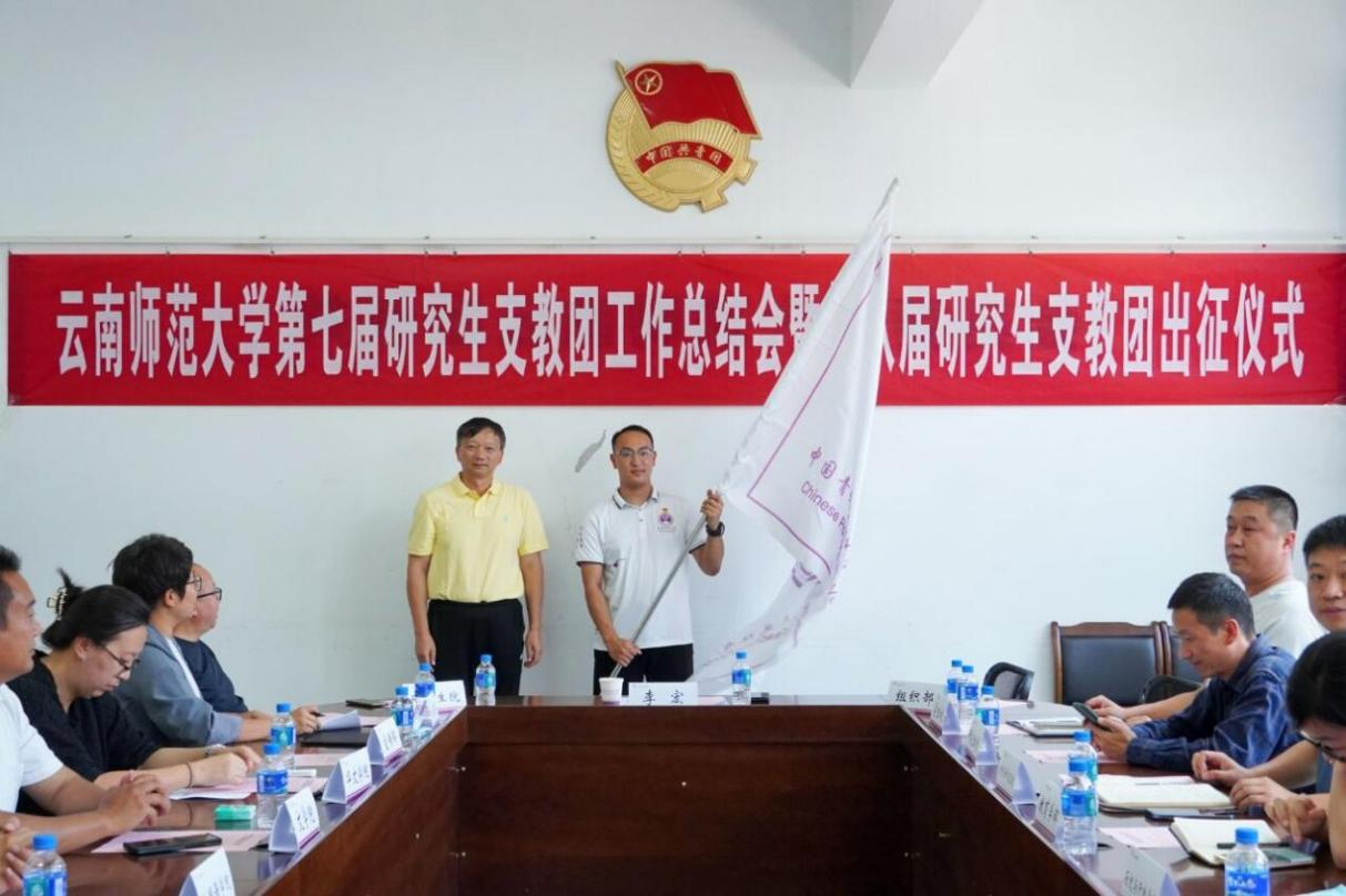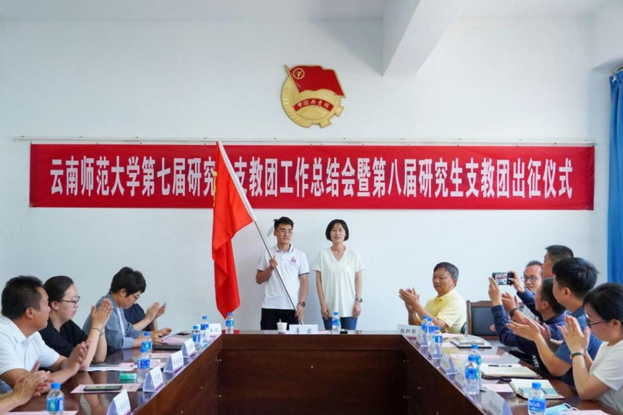 2022年8月29日中午,云南师范大学第七届研究生支教团工作总结会暨第八届研究生支教团出征仪式在呈贡主校区大学生活动中心209会议室举行。校党委副书记李宏,党委组织部、党委宣传部、研究生处、研究生院、学生处、对外合作交流处、校团委相关负责人,各学院(学部)党委副书记代表、团委书记代表,以及第七届、第八届研究生支教团全体成员参加活动。仪式由校团委书记郑伟俊主持。