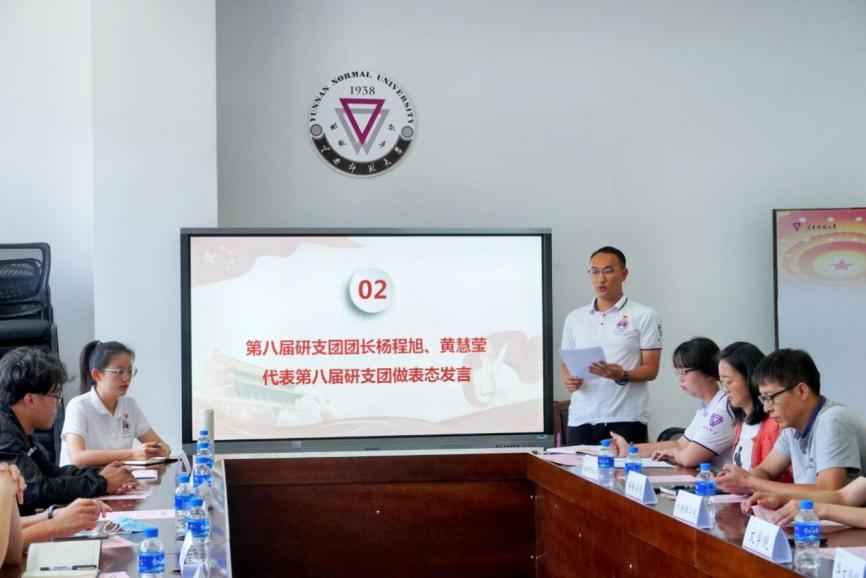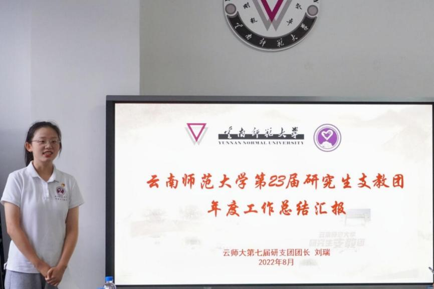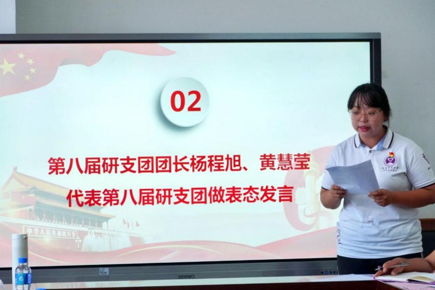 第七届研支团团长刘瑞同学汇报了第七届研支团支教工作开展情况,讲述了支教过程中的所见、所感和所想,分享了“支教一年,自教一生”的经验收获。立志带着收获在接下来三年的研究生学习生涯中,担负责任与使命,继续竭力奋斗、服务社会;并鼓励第八届研支团再接再厉,传好接力棒,开启新征程。