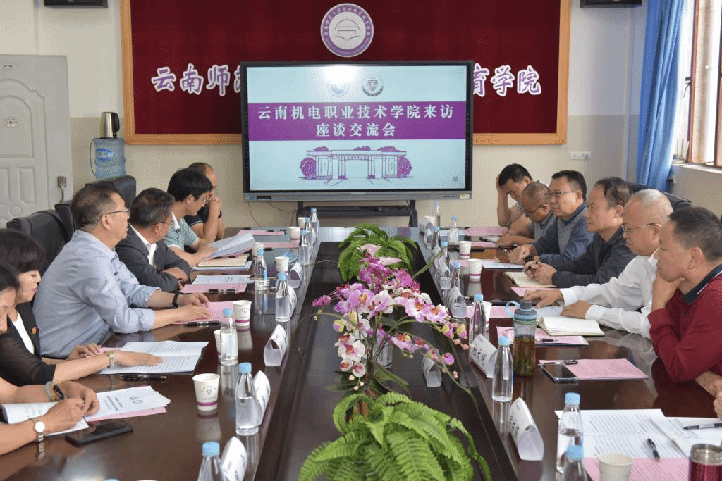 云南机电职业技术学院副校长黄勇林、祖文明、黄晓明,统战部部长、院办(党委巡察办)主任字庆锋,人事处处长、交通工程学院院长周明,后勤保障管理处处长杨健,继续教育部主任姚忠,校企合作办公室副主任杨晓春,宣传部刘旭刚参加调研。我校校办主任吴雁江,党委教师工作部副部长周宁,后勤保障服务中心主任钟汝能和副主任杨志荣,资产公司总经理朱黎,职教学院党委书记刘虹和院长牛元帅,职业技术教育研究所所长王坤,继教学院院长唐瑛参加座谈。