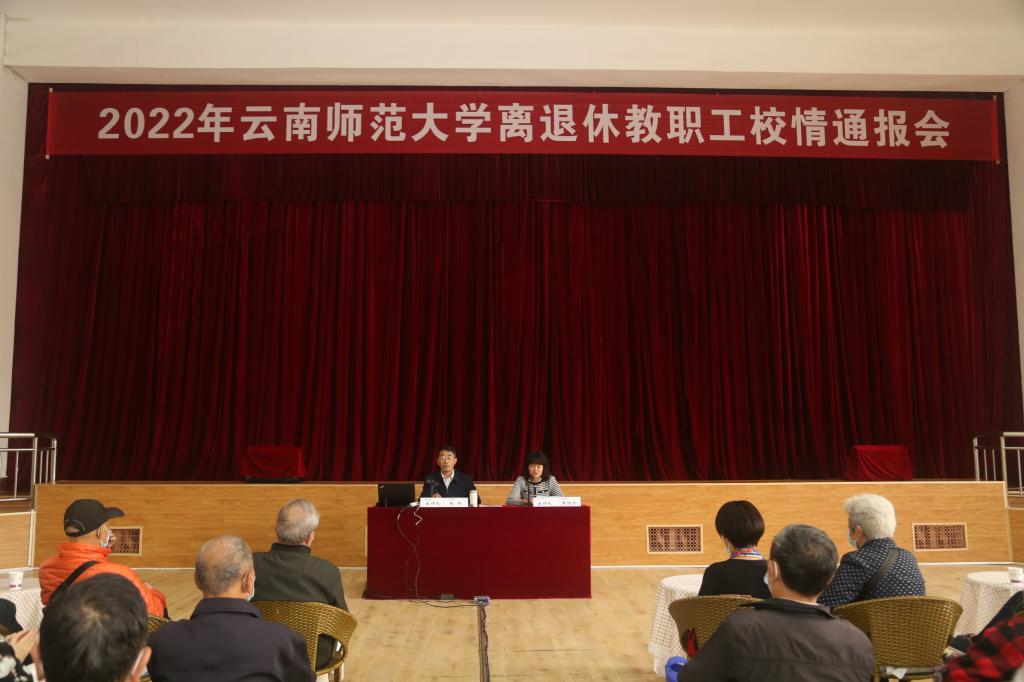 9月23日下午,根据学校党委的安排部署,校党委副书记张玮在一二一西南联大校区西院活动中心主持召开了2022年校情通报会。离退休校领导、离退休各党总支、各党支部、各团体协会、专家、行政组长等代表及离退休工作部门全体人员共约100人参加会议。会议由离退休教职工党委书记王琼玲主持。