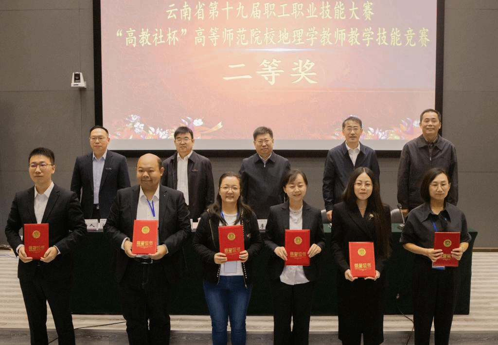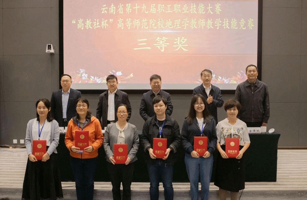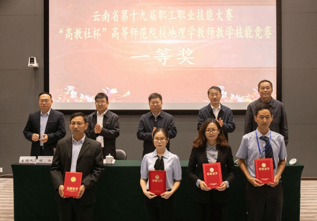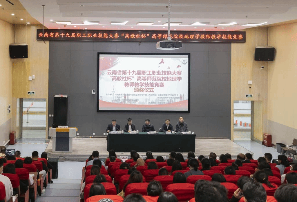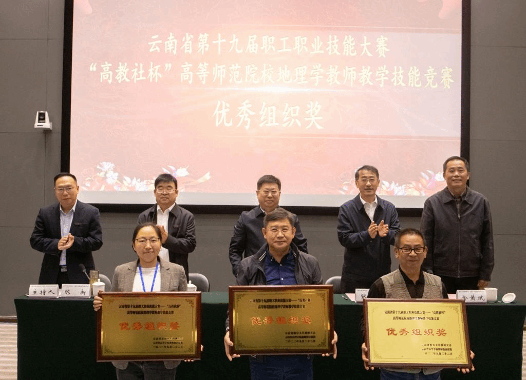 9月23日上午,由云南省职工经济技术创新工程领导小组、云南省总工会、云南省人力资源和社会保障厅主办,云南省高等学校教师教育联盟承办,高等教育出版社协办的云南省第十九届职工职业技能大赛——“高教社杯”高等师范院校地理学教师教学技能竞赛颁奖仪式在云南师范大学呈贡主校区国家教师教育教学实验中心II区214报告厅举行。