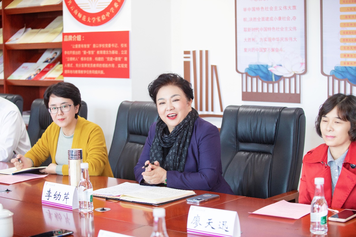 李幼芹表示,教育硕士培养是建设高层次基础教师队伍的重中之重,学校急需补充新鲜的血液加强队伍建设。她指出,目前是党和国家推动深化教师教育改革发展的重要时期,云南师范大学选择实验中学作为联合培养教育硕士基地,是对实验中学最大的信任和重托,为此她代表实验中学表示由衷地感谢。李幼芹表示,实验中学一定不负重托,充分发挥学校的优势和特色,以全面性、实践性为主线,将教育硕士培养成为基础教育战线上综合素质较高的优秀教师。最后,她对教育硕士提了三点要求:一是先学做人,再学做学问,二是不仅要学会,关键是要会学,三是不仅要教会,关键是要会教。她希望实习同学把握好与指导教师交流的机会、与学生朝夕相伴的机会,厚植自己的教育情怀,磨练自己的技能,真正做到践行师德、学会教学、学会育人、学会发展。