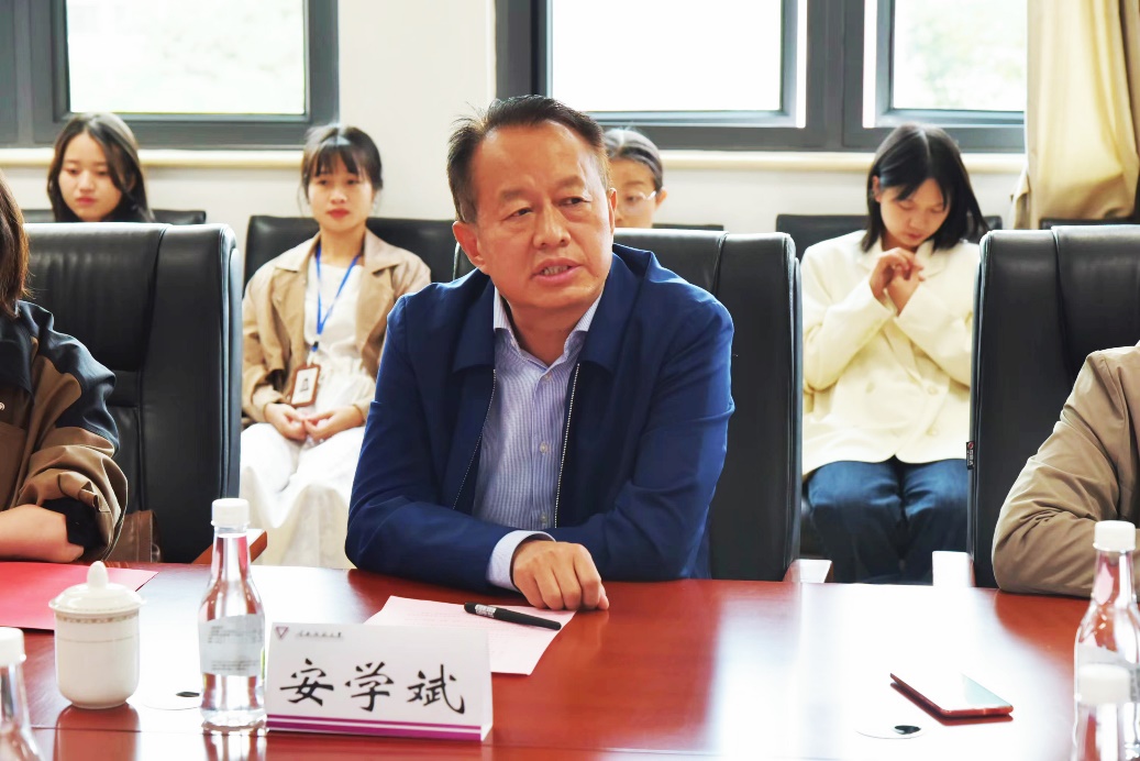 安学斌代表学校致辞,他首先对我校与实验中学教育硕士专业学位研究生联合培养实践基地的签约揭牌暨开学仪式表示祝贺,并对实验中学在基地建设过程中的鼎力支持表示衷心感谢。他指出,教育硕士是培养高素质的基础教育学校专任教师和管理人才,其重点是提高研究生的职业能力、实践能力、应用能力和创新能力,而实验中学是一所充满活力、基础深厚、实力强劲的基础教育名校。师大和实验中学同根同源,更应加强交流与合作,建立正式的校级联合培养实践基地。安学斌提出三点希望,一是希望双方能够在更深的层次上、更广的领域上开展合作,实现双赢;二是希望把基地建设好,成为优质品牌,在全省乃至全国起到示范、引领的作用;三是希望实习生珍惜到名校实习实践的机会,遵守校规校级、做好个人疫情防控,增强本领、提高技能,在今后的工作岗位中,为国家的教育事业做出自己应有的贡献。