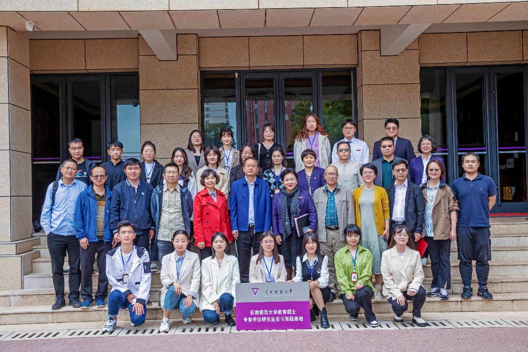 安学斌副校长及李幼芹校长共同为导师代表颁发了聘书,同时为“云南师范大学教育硕士专业学位研究生实习实践基地”揭牌,全体参会教师与教育硕士实习生合影留念。