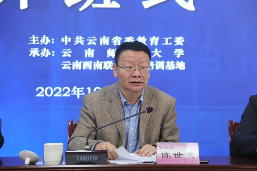 10月10日上午,由省委教育工委主办,云南师范大学、云南西南联大干部培训基地承办的“2022年云南省高校思想政治理论课教师培训班(第一期)”在我校云南西南联大干部培训基地开班。省委教育工委副书记、省教育厅党组成员陈世波,云南师范大学党委书记张祖武出席并讲话。省委教育工委宣传部、我校马克思主义学院主要负责人,全省79所高校选派的117名思想政治理论课教师参加开班仪式。云南西南联大干部培训基地执行主任匡锦主持开班仪式。
