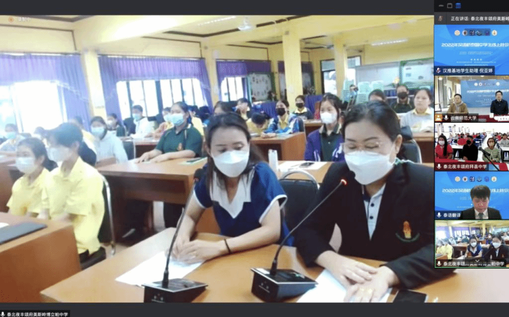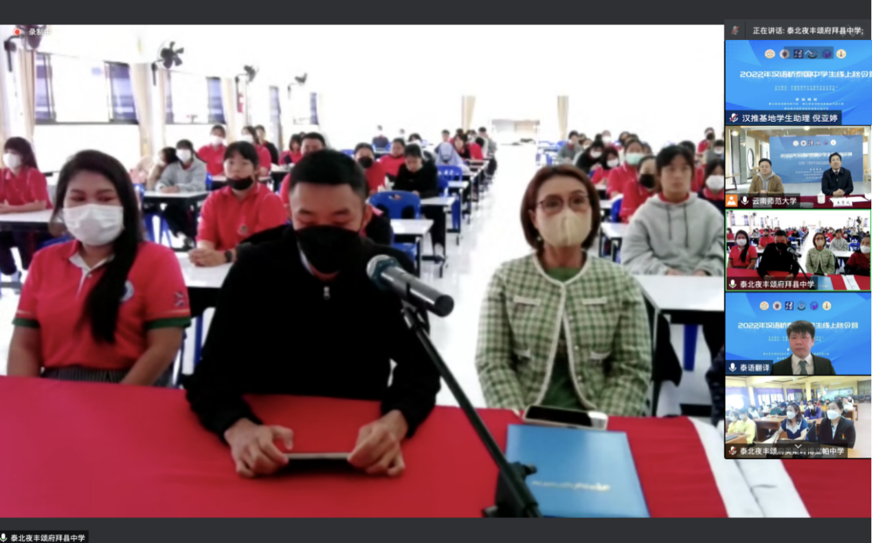 王秀成致辞中指出,中泰两国地缘相近、人文相亲,近年来两国在经贸往来、人文交流、教育合作等方面的合作日益紧密,“中泰一家亲”的外交合作理念不断深入人心。云南师范大学历来重视与泰国的教育合作与交流,与泰国教育部门、教育机构在高层互访、教师培训、学生互换等方面开展了全面合作。本次项目是云南师范大学今年第二次承办百人团组规模的泰国中学生线上短期中文项目,希望能给泰国青少年更多学习中文、探索中国文化的机会。在泰方合作单位的鼎力支持下,云南师范大学认真组织筹备,精心策划课程,全力确保教学质量,相信同学们一定能学有所获。