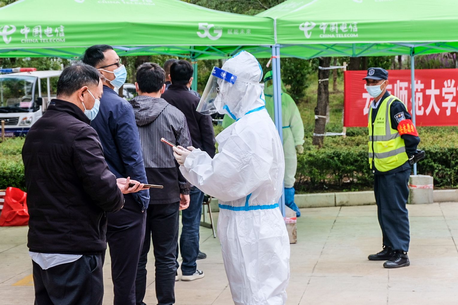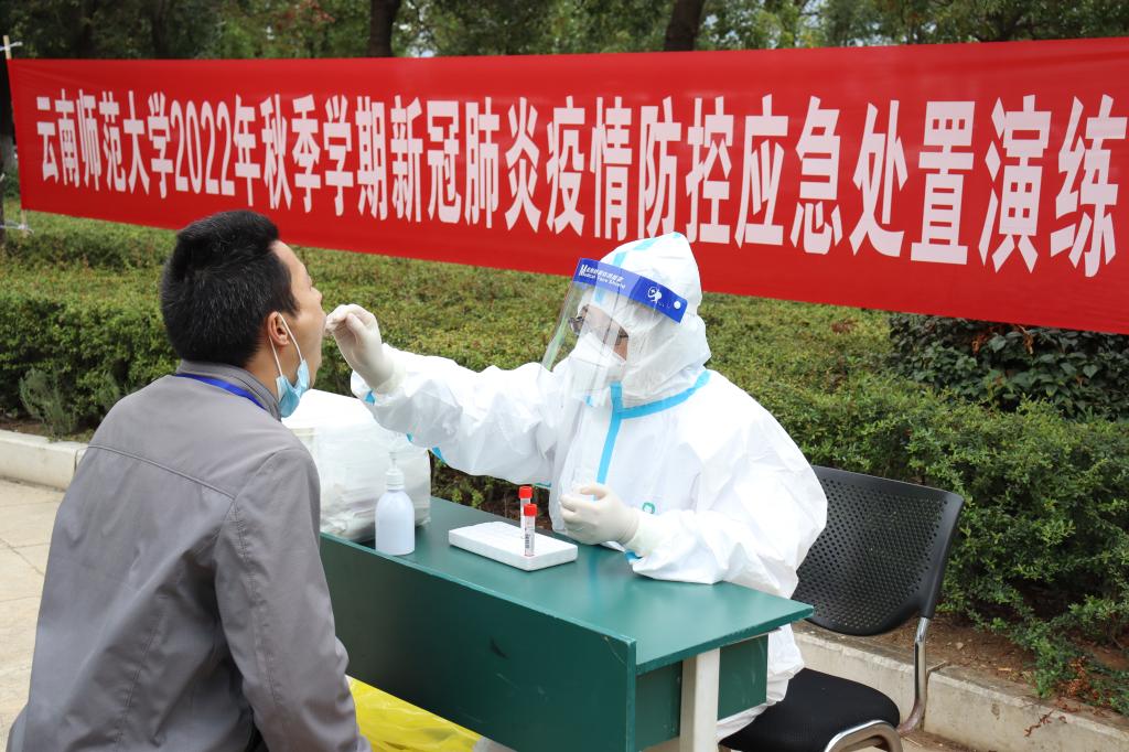 本次疫情防控应急处置演练围绕呈贡校区东区十栋一名“万名校长培训计划项目”学员被判定为密接的人员展开。按照学校疫情防控应急处置预案,学校疫情防控办、校医院、万名校长培训计划项目办、保卫处、后勤保障服务中心、心理健康教育咨询中心办公室等单位有序开展信息报告、人员转运、风险排查、消毒消杀、核酸检测、心理疏导等相关工作。整个应急处置演练紧张有序,参与演练的工作人员紧密配合、有序衔接、各司其职,做到处置流程标准,应对措施明确,取得了预期效果。