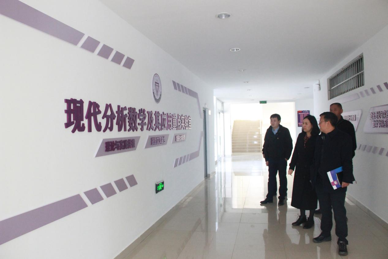 孟庆红参观了数学学院院史馆、实验室等地,数学学院党委书记王源昌介绍了学院历史沿革及实验室建设情况。孟庆红指出了问题,提出相应建议。