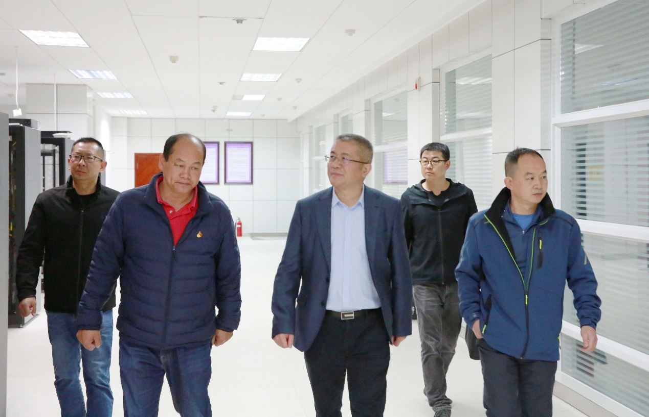 张祖武现场考察了学校的核心机房,了解了校园网的整体网络架构、核心机房管理运维以及学校信息化建设的发展情况。
