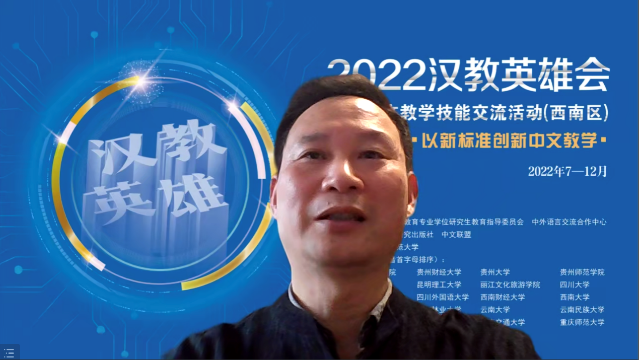 2022“汉教英雄会”国际中文教学技能交流活动由教育部中外语言交流合作中心与全国汉语国际教育专业学位研究生教育指导委员会联合举办,活动分为东北、华北、华东、西南、西北、中南六个片区展开,其中西南片区活动由云南师范大学承办。