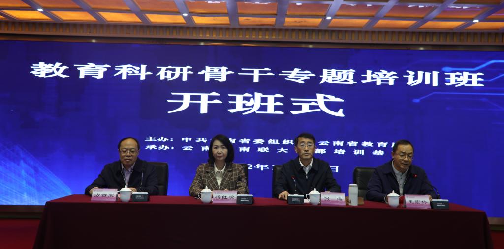 10月31日,由省委组织部、省委教育工委、省教育厅联合主办,云南西南联大干部培训基地承办的“云南省教育科研骨干专题培训班”在我校开班。省人民政府教育督导团总督学杨红琼、云南省教育科学研究院院长方贵荣、我校党委副书记张玮,全省各级教育科研部门负责人、骨干共175人参加开班仪式。云南西南联大干部培训基地执行副主任王宏伟主持仪式。