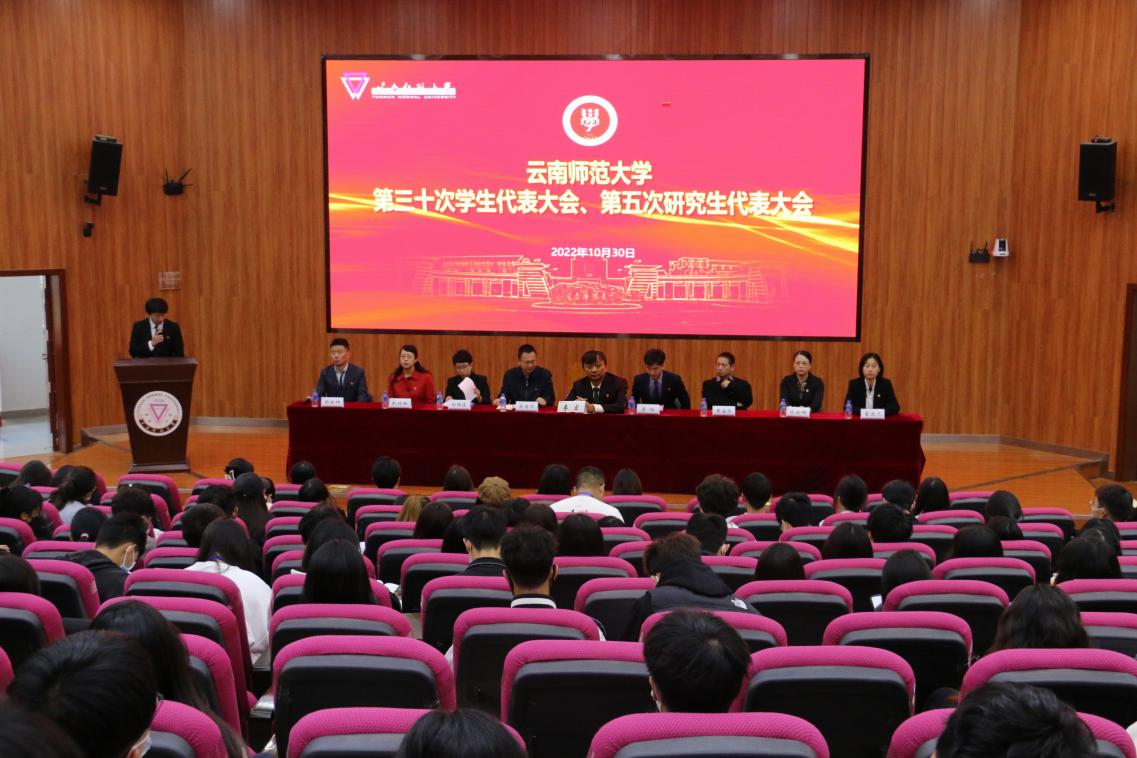 云南师范大学第三十次学生代表大会、第五次研究生代表大会于10月30日在呈贡主校区胜利召开,来自全校各学院(学部)的327名学生代表参加大会。会议审议并通过了《云南师范大学第二十九届学生会工作报告》《云南师范大学第二十三届研究生会工作报告》,讨论并通过了新修订的《云南师范大学学生会章程》《云南师范大学研究生会章程》和《云南师范大学学生会委员会组织条例》《云南师范大学研究生会委员会组织条例》,选举产生了新一届云南师范大学学生会委员会、研究生会委员会的委员和主席团成员。