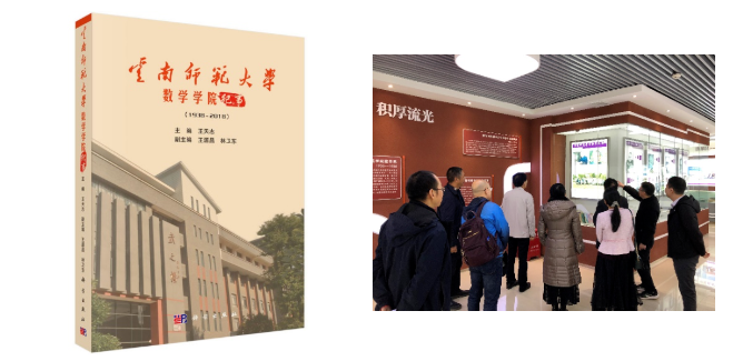 六是文化传承开创新局面。学院在教学科研中积极开展数学文化研究和传播,2018年在科学出版社出版了《云南师范大学数学学院纪事(1938-2018)》,同时建成“西南联大数学文化馆”。2019年获批云南省科学普及教育基地并得到云南省政府授牌。2022年7月,西南联大数学文化馆获批教育部首批“大思政课”实践教学基地,被教育部和科技部联合设立为“科学精神专题实践教学基地”。学院每年举办科技活动周、开展数学科普进校园和科普进社区活动,制作了文化墙展板150余块,大力普及和传播数学文化。