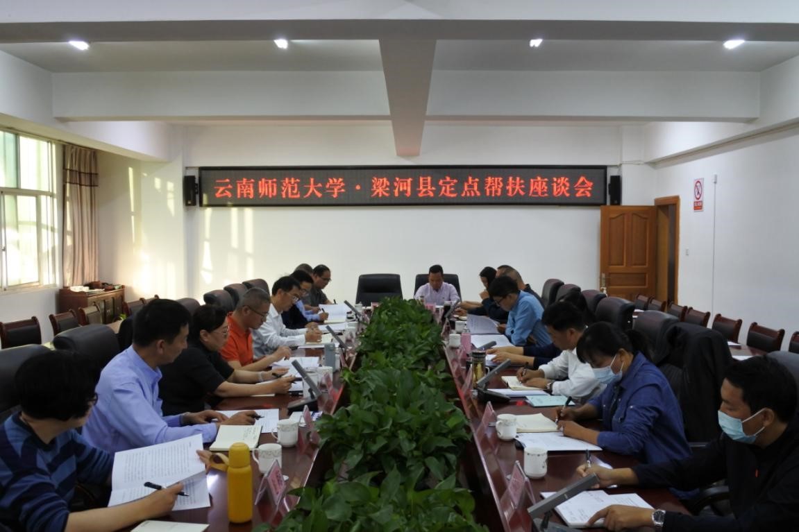 在梁河县人民政府,张祖武一行与梁河县委书记龚翠莲、县长何胜富等县委、县政府领导班子召开定点帮扶座谈会。龚翠莲介绍了梁河巩固脱贫攻坚与乡村振兴有效衔接推进情况、云南师范大学定点帮扶梁河县取得的实效、恳请支持帮助解决的事项等,希望云南师范大学继续支持梁河县各项事业的发展,助力梁河县加快推进“三个示范区”建设。张玮、郝淑美、陈正权以及我校与会各部门负责人,梁河县委县政府相关部门领导作了交流发言。在认真听取梁河县有关发展情况的介绍后,张祖武充分肯定校地双方合作所取得的成绩,并表示此次考察调研乡村振兴工作既是走访了解情况,也是为了明确工作任务。他指出,从长远来看,乡村振兴归根到底关键在于人才振兴,校地双方要总结好教育帮扶的成功经验,密切配合,结合梁河当地发展需求,发挥云南师范大学优质教育资源优势,共同将梁河县打造成为边疆高质量教育体系示范县,助力梁河县走出乡村振兴示范之路。