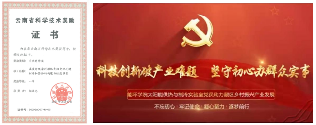 学院坚持党建引领,将科研工作与服务社会紧密结合,科技工作聚焦国家战略和区域发展需求,主动服务云南地方经济社会,助力乡村振兴,在光伏水泵、太阳能干燥技术、沼气示范工程、三七土传病害生物防治等领域实现了科技成果转化和产业化。李明教授团队、杨培志研究员团队分别荣获云南省科学技术奖(自然科学奖)一等奖。徐锐教授团队的“生物质能促进高原农业减污降碳关键技术与应用”获2022年度中国可再生能源学会科学技术三等奖,实现了学院在国家级协会获奖的新突破。以杨培志研究员作为团队负责人的“云南师范大学低维材料及其应用省创新团队”2020年度入选云南省创新团队培育对象。官会林教授主持的“高原特色中药材种植土壤质量演变退化与修复云南省野外科学观测研究站”获云南省科技厅立项建设。学院新增国家自然科学基金项目23项(含面上项目1项、国际合作项目1项,联合基金项目1项),省部级项目25项(含重大项目4项,重点项目8项),厅级项目11项,出版专著14部,发表各类论文694篇,其中SCI收录论文285篇。