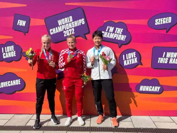 万崟同学获得2022年皮划艇世界青年锦标赛女子5000米单人滑银牌