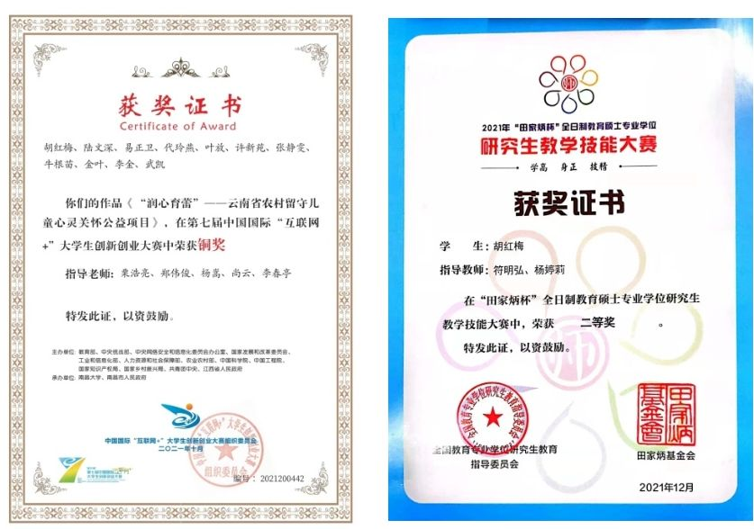 课程管理与培育成果突出。大力推进金课建设和申报,1门课程获省级思政示范课程,9门课程获校级一流课程立项,4门课程获校级B类认定,14门课程获院级一流课程立项。完成云南省第三次专业综合评价的申报工作,教育学专业获得B-等级,其余三个专业获得C+等级,四个专业均位列云南省第一;重视教学类研究项目的培育与申报,两个项目获国家级立项;组织和培育教学成果奖,1项获云南省高等教育教学成果一等奖,1项获省级培育立项,9项获校级培育立项。2名教授获省级研究生优质课程立项,2名教师获省级专业学位研究生教学案例库建设立项,2名研究生在“田家炳杯”全日制教育硕士专业学位研究生教学技能大赛中获二等奖。