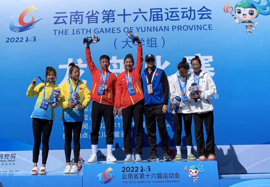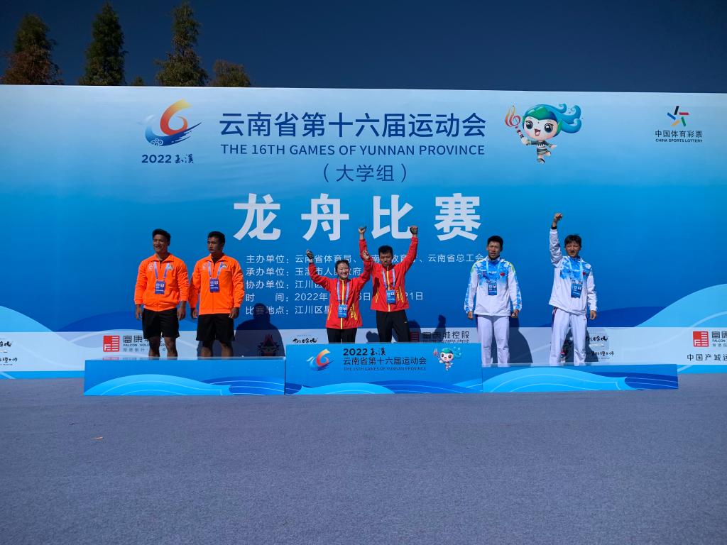 11月18日上午,在云南省第十六届运动会大学组龙舟比赛中,云南师范大学龙舟队包揽首日3枚金牌,获奖项目为男子100米直线加速赛,女子100米直线加速赛,男女混合100米直线加速赛。