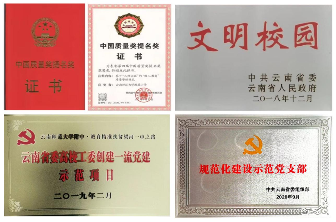云南师范大学附属中学在高考、学科竞赛中均取得全省领先的成绩,2017年以来共培养4757名优秀毕业生,为国家建设输送大批优秀人才,连续获得“云南省教学质量奖”一等奖第一名。云南师范大学附属小学现拥有文林、金安、金牛、樱花语、呈贡"一校五区",以“良习修美德 好好做个人”办学理念为核心,打造“师生共同成长的生命乐园”的高品质学校,先后获得“国家级基础教育教学成果二等奖”“全国文明校园”“第四届中国质量奖提名奖”等多项荣誉。云南师范大学实验中学校本部初中学部教育教学成绩显著,中考多项指标一直名列昆明市前茅,高中部高考教育教学质量逐年攀升,各项重要指标位列全省同类同级别学校前茅,学校先后获得“中国民办教育百强”“教育部全国教育系统先进单位”“全国教育系统先进集体”“全国基础教育名校”等荣誉百余项。