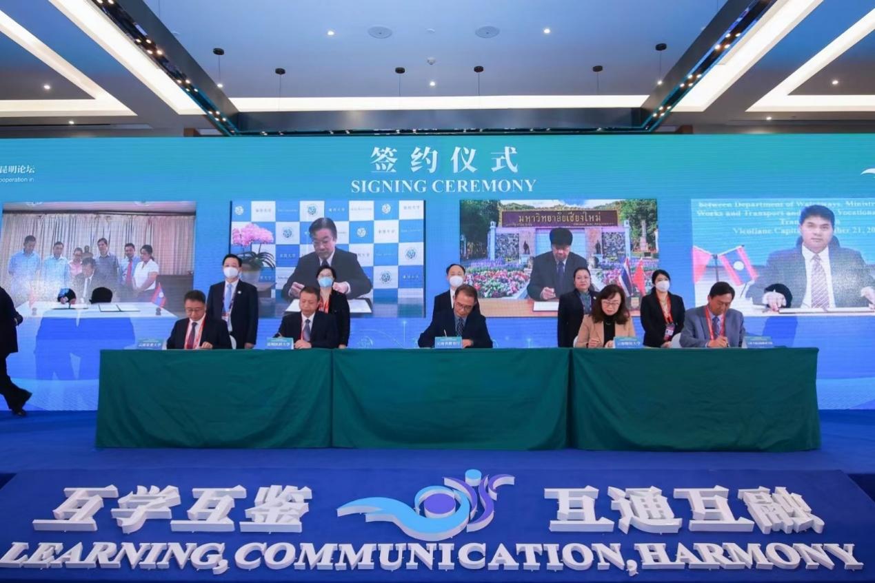论坛签订了10个教育合作协议,涉及部省合作、汉语国际教育、医学教育合作、农业教育合作、交通运输领域职业教育等多个领域,全方位展现了云南积极推进国际教育交流合作的代表性成果。郝淑美副校长代表我校与泰国清迈大学签订了联合培养汉语国际教育硕士研究生项目的合作备忘录。