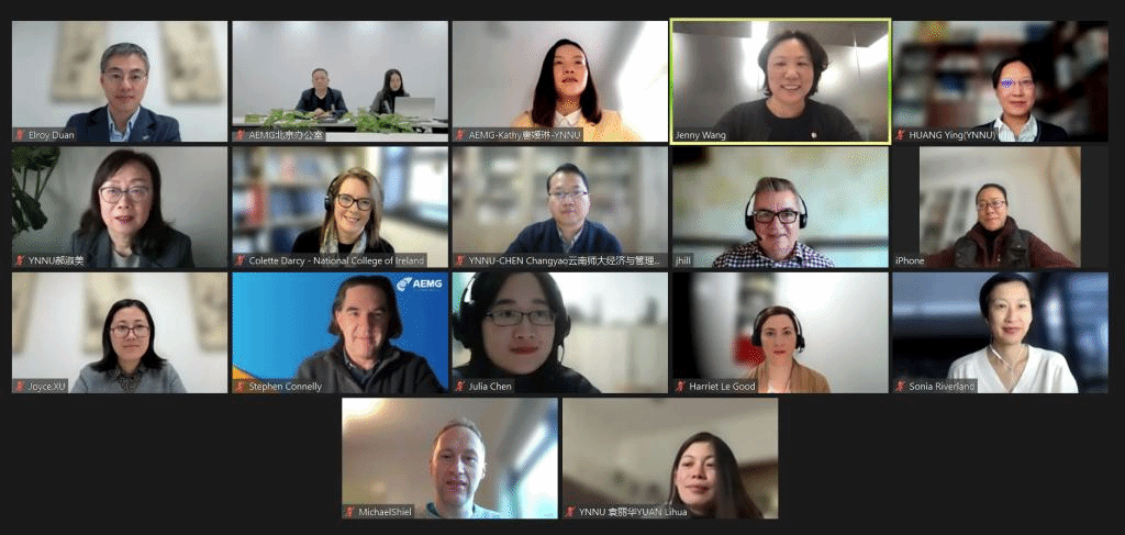 12月8日下午,我校与爱尔兰国家学院及澳大利亚教育管理集团在线召开2022年度云南师范大学与爱尔兰国际学院会计学项目的联合管理委员会会议。爱尔兰国家学院副校长Jimmy Hill及商学院、国际处相关负责人,澳大利亚教育管理集团执行董事王晶、副总裁吕玉琪、副总裁(市场)Stephen Connelly 及全球事务与合作伙伴部、学术关系部和云南师范大学项目分部负责人,我校副校长郝淑美及对外合作交流处、教务处、经济管理学院相关负责人参加了会议。