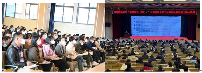 本次培训分三批实施,培训时间分别为1月7日至12日、1月10日至15日、1月13日至18日。1月8日、11日和14日,在云南师范大学实验中学三楼礼堂分别举行了三个批次的开班仪式。云南省教育厅相关处室负责同志,继续教育学院、云南师范大学实验中学,云南大学附属中学相关负责人出席开班仪式。开班仪式由继续教育学院副院长刘应兰主持。