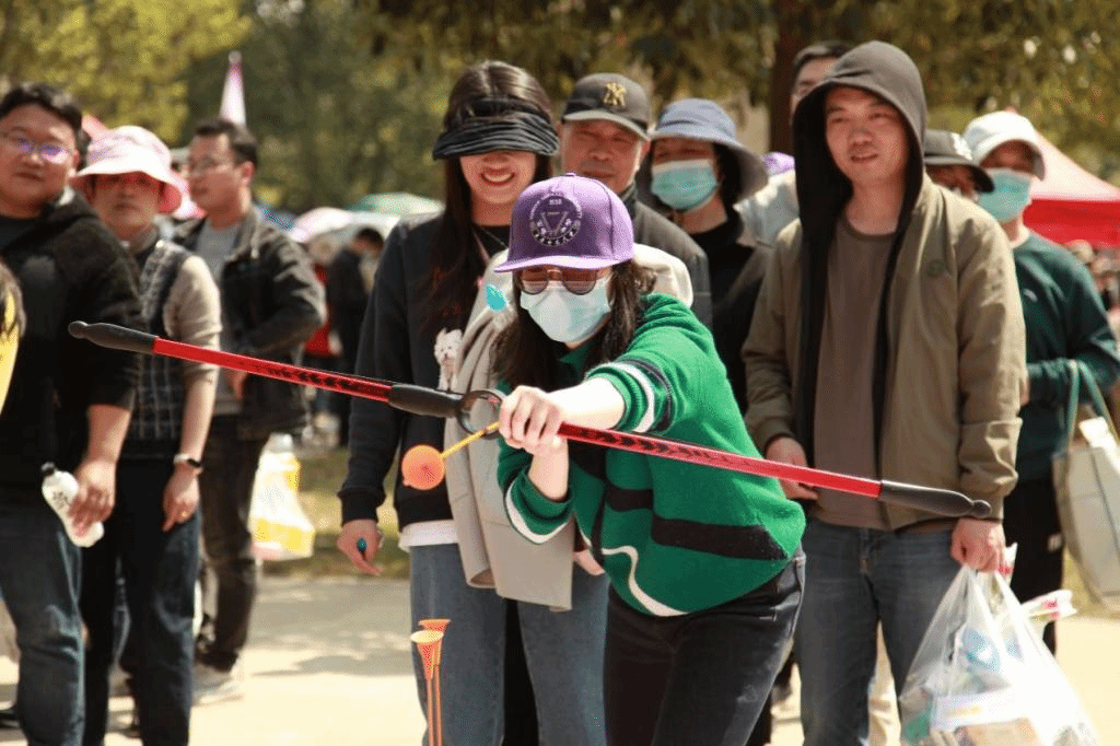面对具有挑战性的项目时,大家兴趣满满,互相加油鼓劲。“7环,8环,10环,越来越近了……”在“箭”证奇迹这一项目中,参赛选手们蓄势拉弓,跃跃欲试。