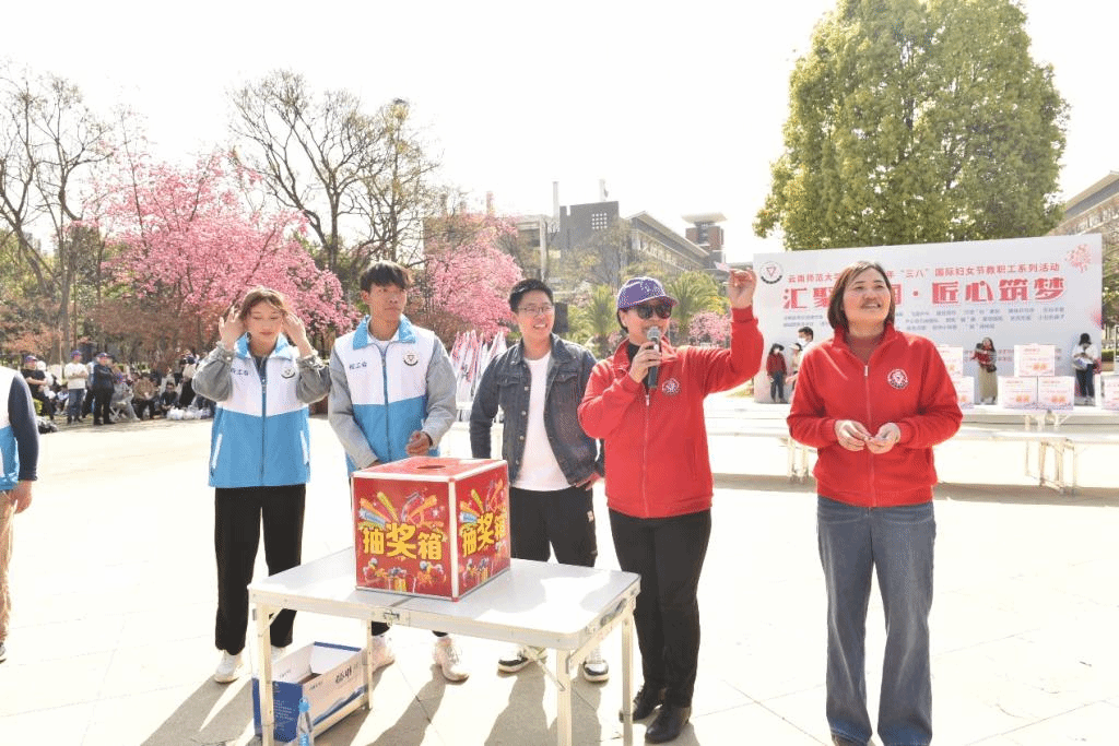 3月8日,由校工会、校妇联、校工会女职工委员会主办,各二级部门工会协办的“汇聚巾帼·匠心筑梦”庆祝“三八”国际劳动妇女节教职工系列活动在呈贡主校区红烛广场开展。校党委书记张祖武,党委副书记张玮,副校长、校妇联主席郝淑美以及全校女职工、部分男职工代表参加了活动。