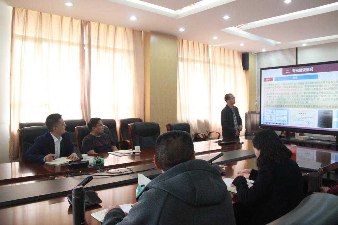 数学学院副院长(主持工作)刘祥清就学院历史沿革、学科建设、教师队伍建设,以及存在的主要问题和发展瓶颈做了详细汇报。学院党委书记王源昌、党委副书记詹镇宇,副院长陈绍雄、王天志、李芳围绕党建思政工作、学生就业、教学工作进行了汇报。