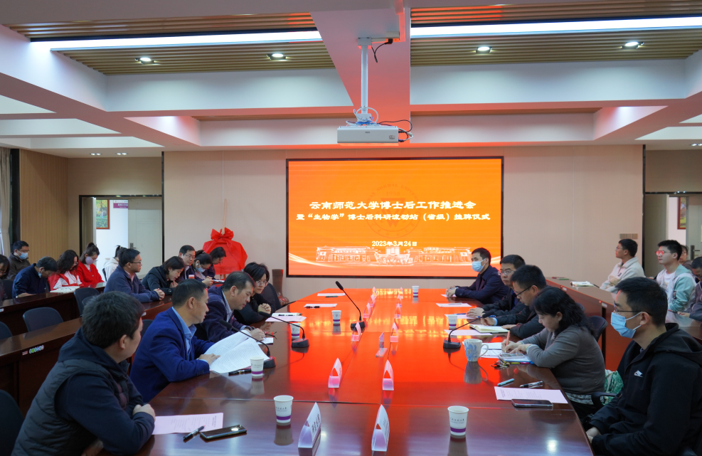 3月24日上午,云南师范大学博士后工作推进会暨生命科学学院“生物学”博士后科研流动站(省级)挂牌仪式在我校呈贡主校区睿智三号楼307会议室举行。副校长牛治亮,人事处、研究生院、科技处、博士后管理委员会办公室、各博士后科研流动站负责人、生命科学学院领导班子、教师代表、博士研究生及硕士研究生代表100余人出席。会议由牛治亮主持。