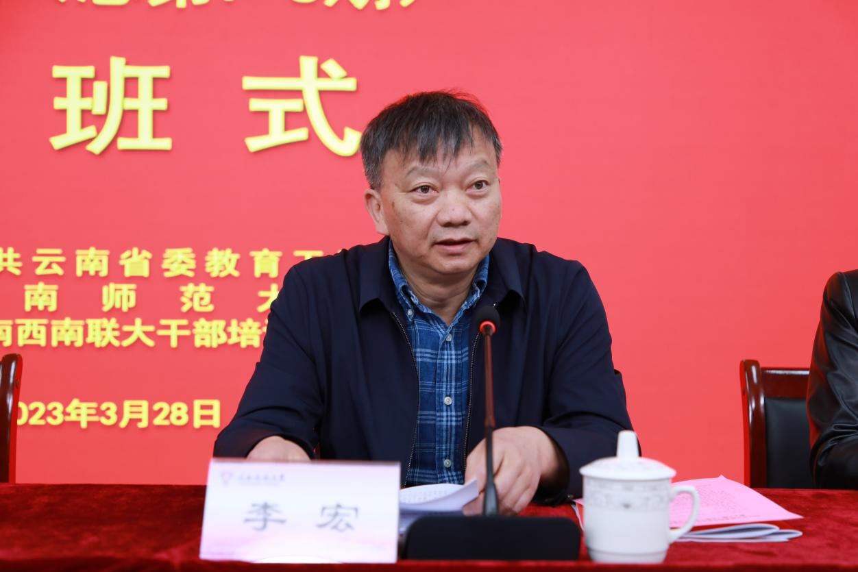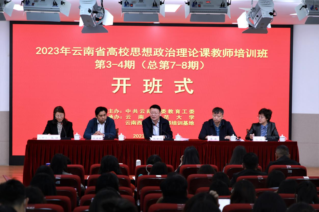3月28日上午,省委教育工委主办、云南师范大学承办的“2023年云南省高校思想政治理论课教师培训班第3-4期(总第7-8期)”举行开班仪式。省委教育工委副书记、省教育厅党组成员陈世波作动员讲话,我校党委副书记李宏致欢迎辞。省委教育工委宣传部部长赫诗锦,云南师范大学马克思主义学院党委书记张健,还有来自全省81所高校的180名思政课教师参加开班仪式。仪式由云南西南联大干部培训基地执行主任匡锦主持。