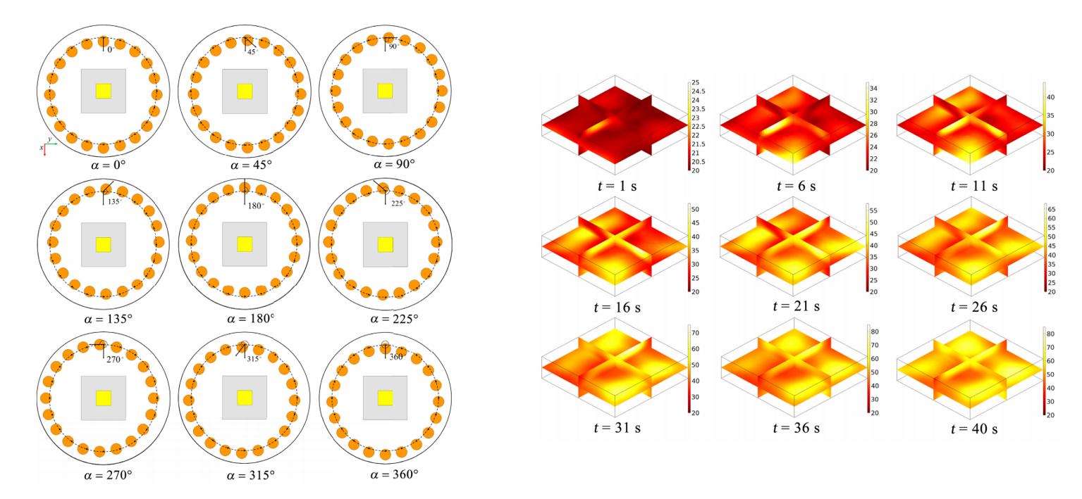 针对传统微波加热过程中加热效率偏低、加热均匀性差等问题,该论文提出通过在传统圆柱形微波反应腔周围放置可偏心旋转铜柱阵列来构成可控时变电磁边界,提升微波加热性能。文章通过不同的边界调整策略实现了不同的加热性能,并通过温度变异系数优化算法实现了高加热效率下加热均匀性的提升。该研究获得国家自然科学基金、云南省“兴滇英才支持计划”青年人才专项、云南省教育厅科学研究基金等项目的资助。