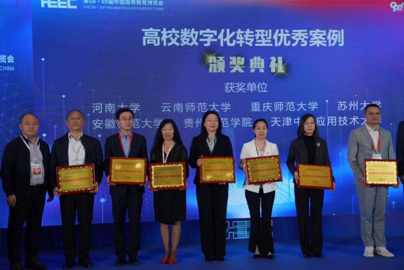 近日,在中国高等教育学会主办的第58·59届中国高等教育博览会上,我校与河南大学、重庆师范大学、苏州大学、安徽师范大学等9所院校获“高校数字化转型优秀案例”。