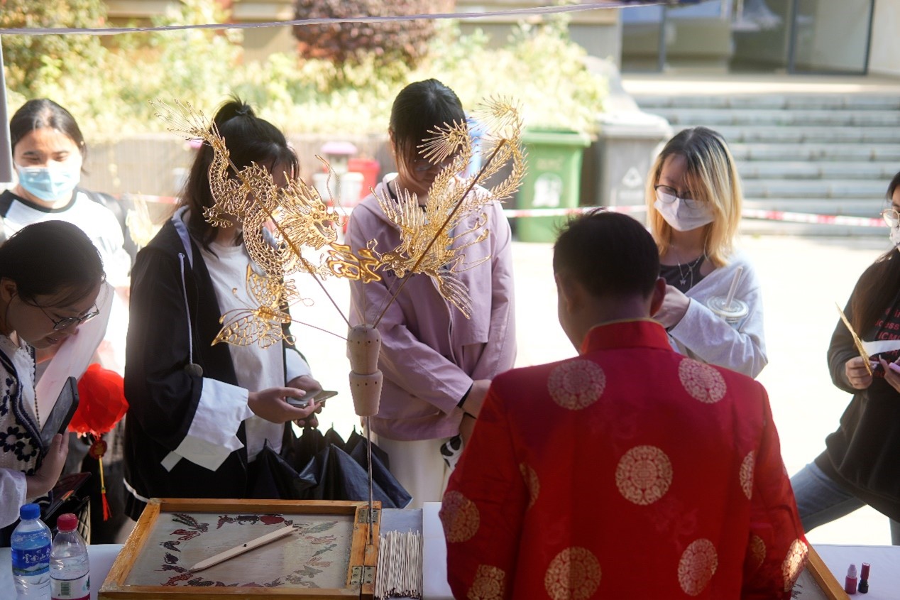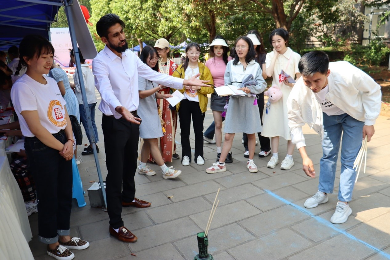 民俗游园活动是本次“国际中文日”的一大特色,学院为中、外学生搭建了“玩中学,学中做”的实践平台,让同学们在中国文化中畅游,在中外交流中增进文明对话。