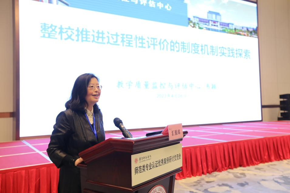 在案例研讨“质量保障板块”环节,韦颖作了《整校推进过程性评价的制度机制实践探索》的交流发言,介绍了云南师范大学以及学校师范专业认证的整体情况,分享了学校在整体推进课程过程性评价工作中采取的体系化制度机制措施以及实践成效,同时也展示我校的优秀课例。