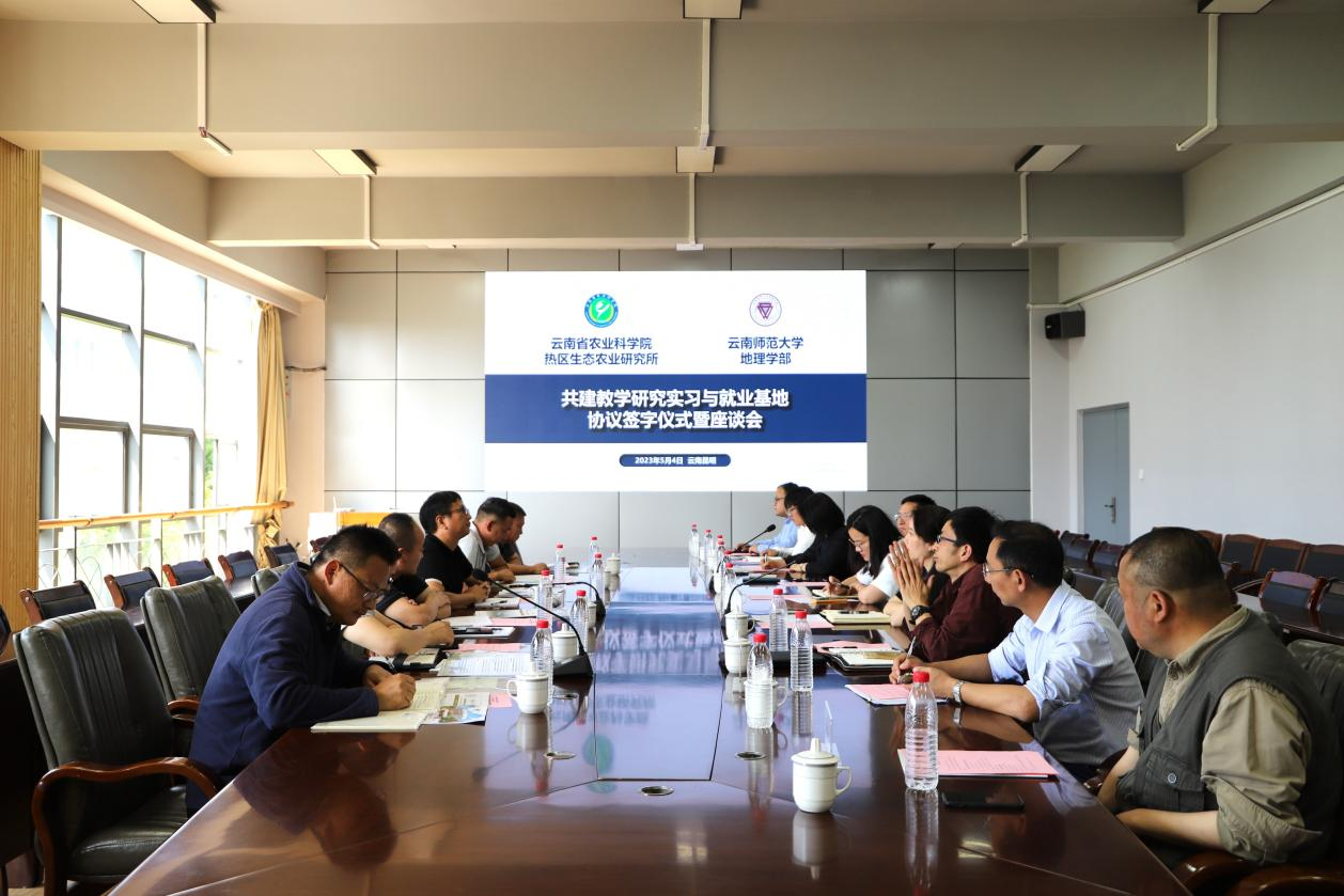 5月4日,云南省农业科学院热区生态农业研究所书记方海东,副所长史亮涛等一行6人到地理学部进行座谈交流并举行共建教学研究实习与就业基地签字仪式,地理学部党委书记周妍主持并致辞。